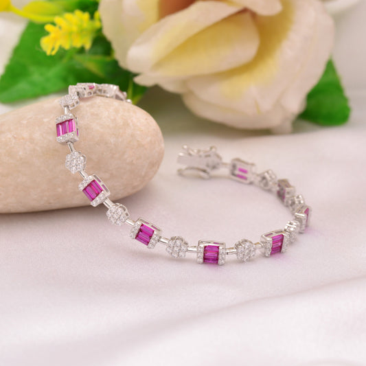 925 Sterling Silver Pink Cubic Zircon Tennis Bracelet For Women