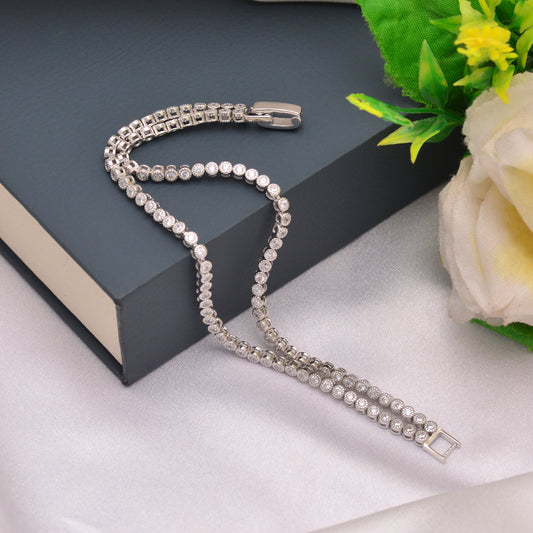 925 Sterling Silver Two Line Tennis Chain Bracelet Women 7 mm