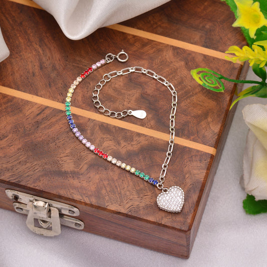 925 Sterling Silver Heart Charm Tennis Chain Bracelets Women