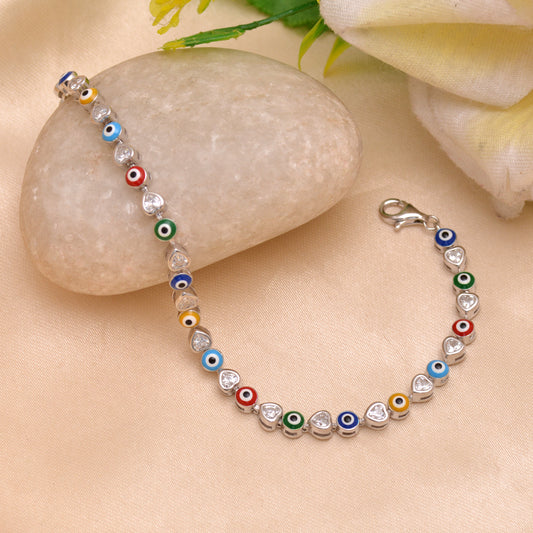 925 Sterling Silver Evil Eye Chain Bracelet For Women