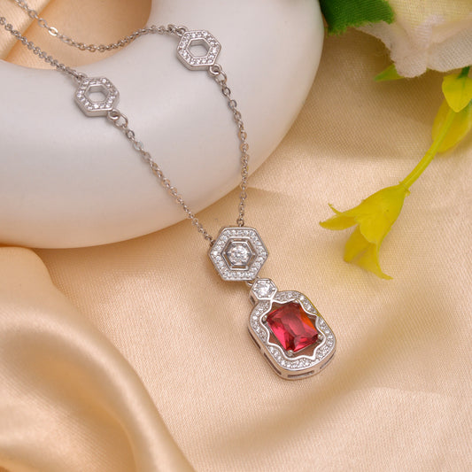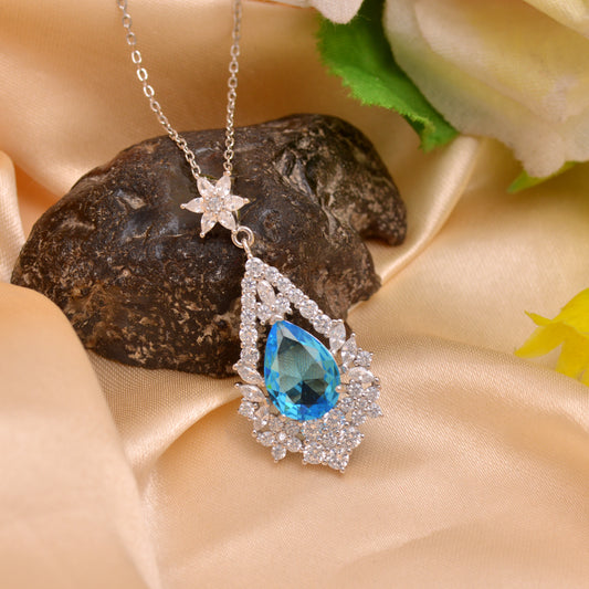 925 Sterling Silver Cubic Zircon Pendant Necklace For Women | Blue | Pink