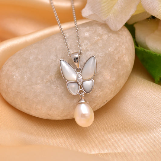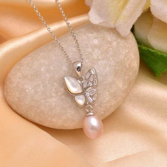 925 Sterling Silver Butterfly Pendant With Pearl Pendant Necklace