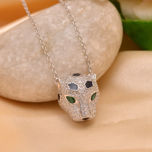 925 Sterling Silver Panther With Lobster Claw Pendant Necklace