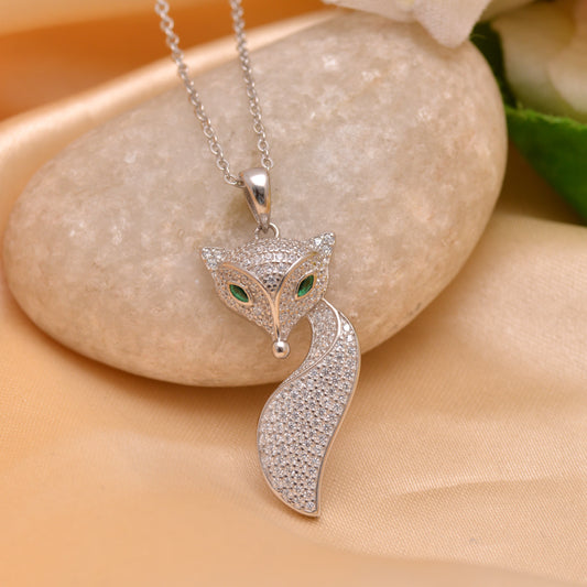 925 Sterling Silver Charm Fox Pendant With Adjustable Cable Chain