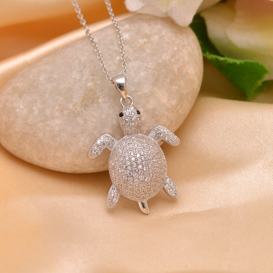 925 Sterling Silver Turtle Pendant Necklace For Women