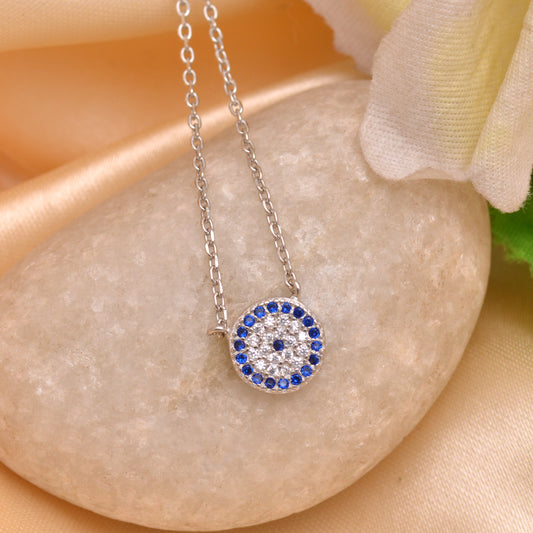 925 Sterling Silver Round Evil Eye Necklace with Chain For Women