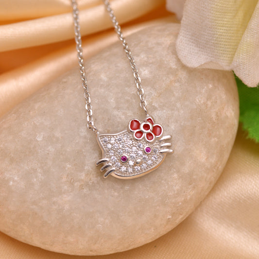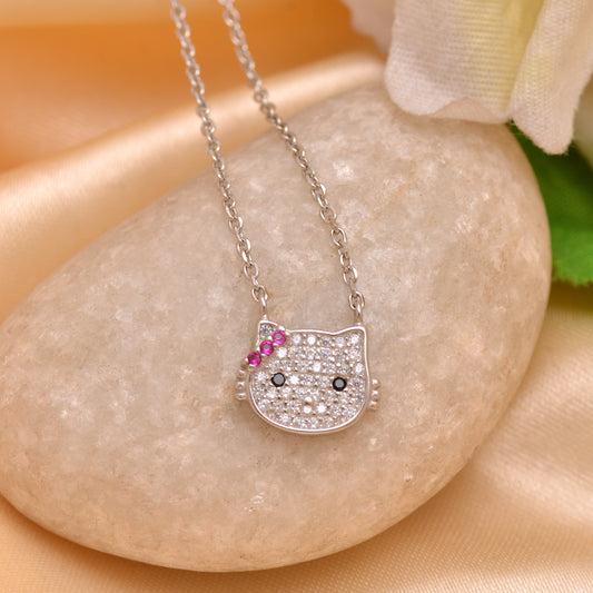 925 Sterling Silver Hello Kitty Pendant Necklace For Women