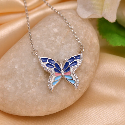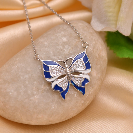 925 Sterling Silver Blue Butterfly Pendant Necklace For Women