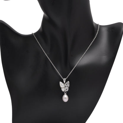925 Sterling Silver Half Crystal Butterfly Pendant With Pearl Pendant Necklace