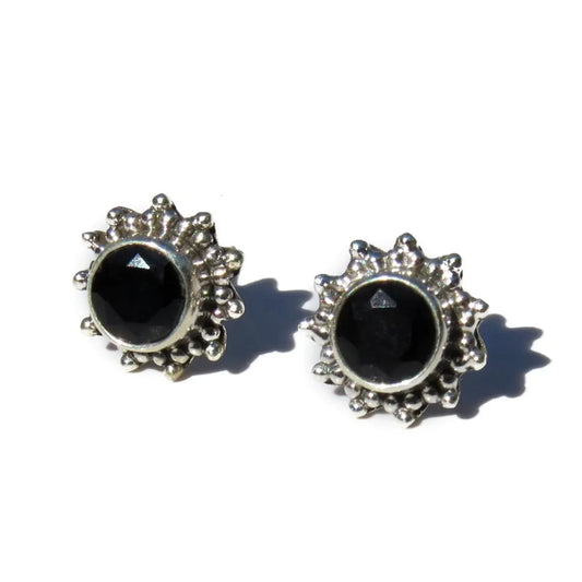 GOLD TROVE Handmade Black Onyx Tiny Silver Studs Jewelry, Onyx Studs, Studs For Gift, Gifts For Her or Him, Minimalist Black Onyx Studs