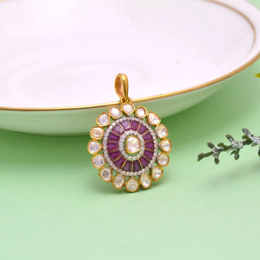 Natural Polki Diamond Pendant Vintage Gold Plated 925 Sterling Silver Women Gift